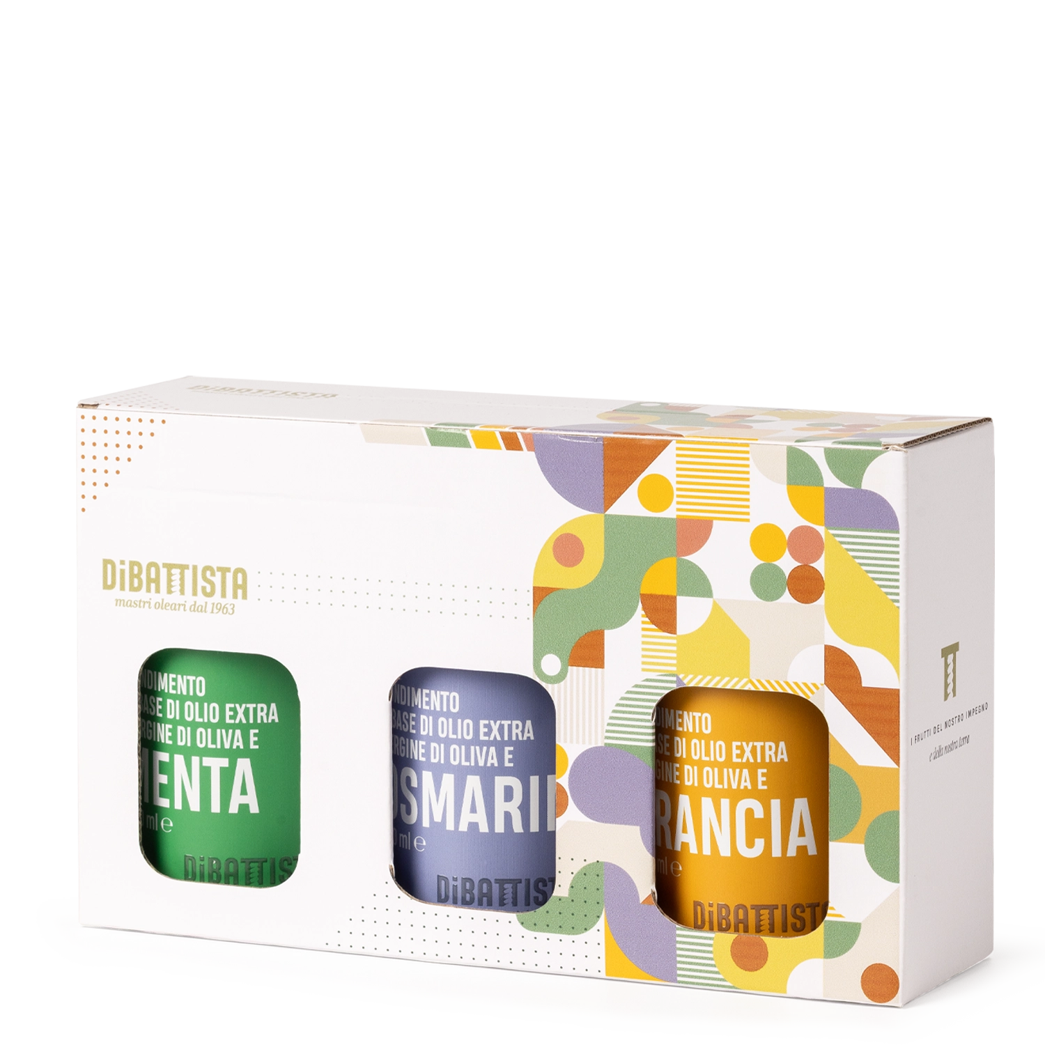 Scopri il Tris Aromatizzato in versione mini: una confezione elegante con tre oli extravergine d’oliva aromatizzati, in lattine da 250 ml ciascuna.
